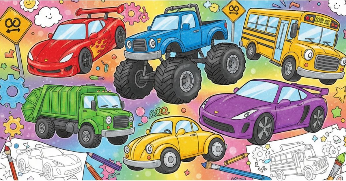 Perfect for fans of engines and speed! Color sleek sports cars, monster trucks, and futuristic vehicles with metallic shades for a realistic look.